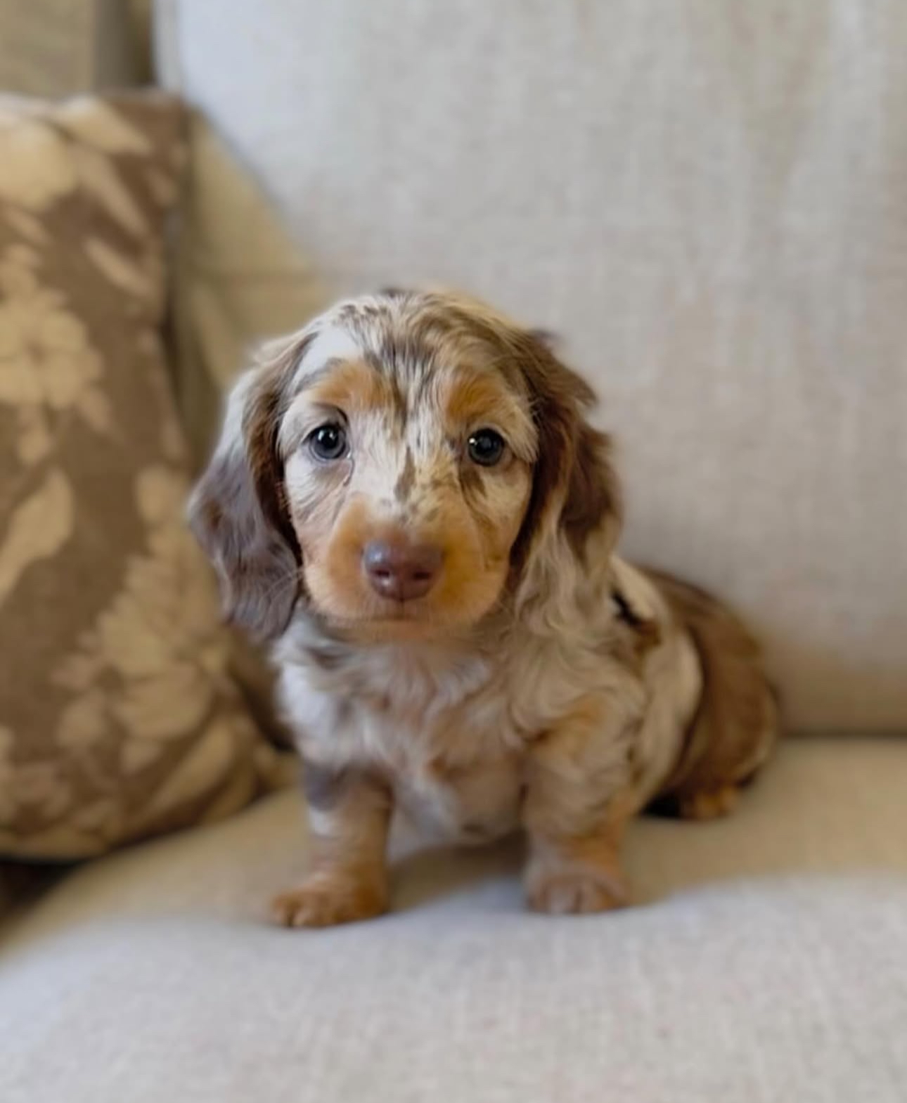 Daisy’s beautiful cream and chocolate dapple coat makes her stand out instantly, but it’s her bright, loving nature that truly steals hearts. She’s playful yet gentle, always tilting her head as if she’s listening to every word you say. Whether she’s exploring new corners or curling up for a nap, Daisy brings warmth and personality wherever she goes.
